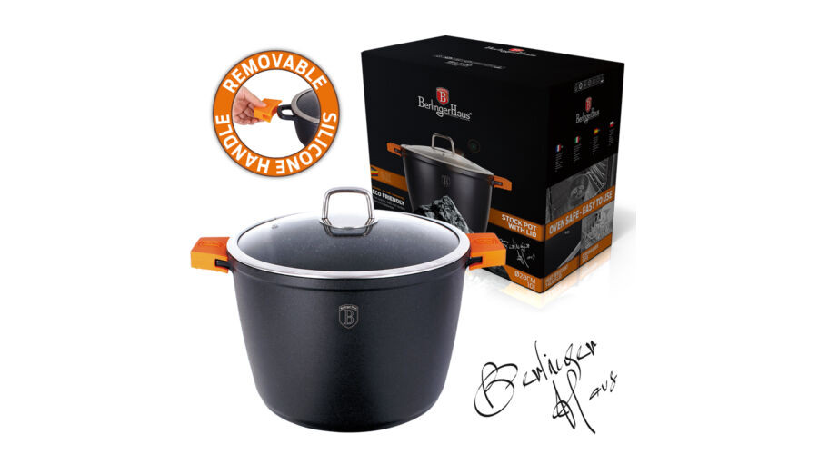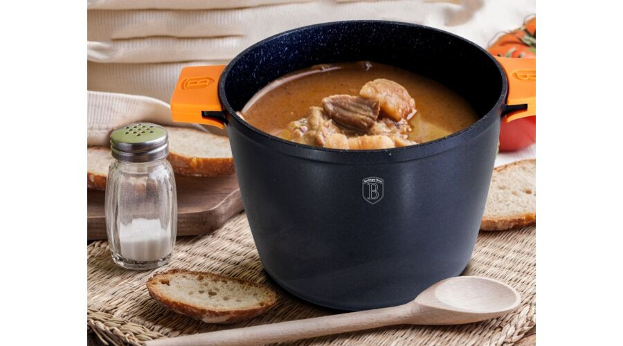 Berlinger Haus Granit Diamond Line fazék márvány bevonattal, fedővel, szilikon fogókkal, 24 cm