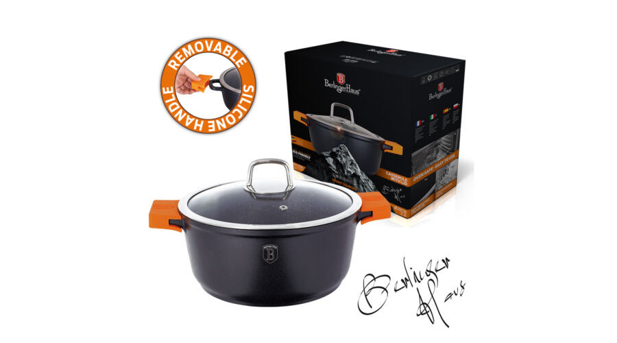 Berlinger Haus Granit Diamond Line magas lábas márvány bevonattal, szilikon fogókkal, fedővel, 20 cm