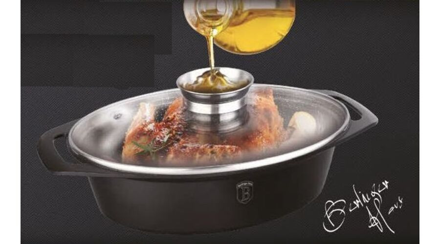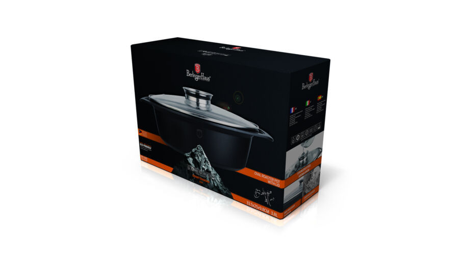 Berlinger Haus Granit Diamond Line ovális sütőedény márvány bevonattal, fedővel, aromanyílással