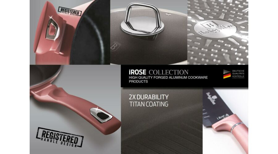 A Berlinger Haus I-Rose Collection edények kovácsolt alumíniumból készültek titán bevonattal.