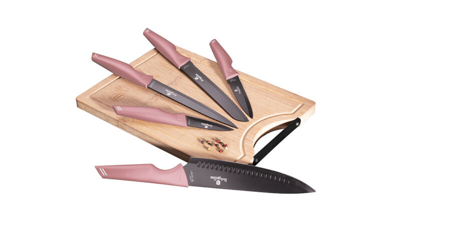 Berlinger Haus I-Rose Collection 6 részes késkészlet bambusz vágódeszkával