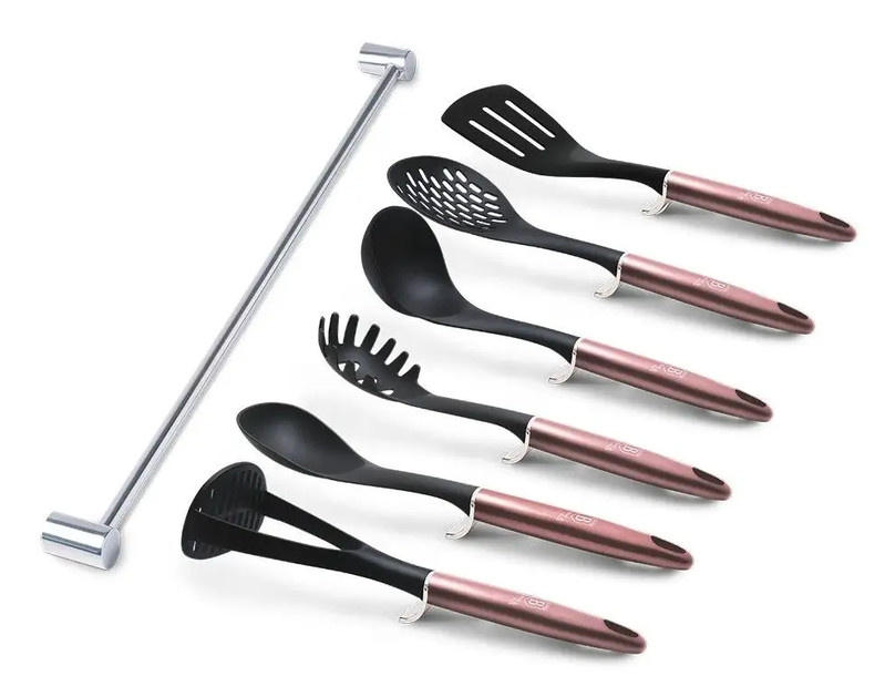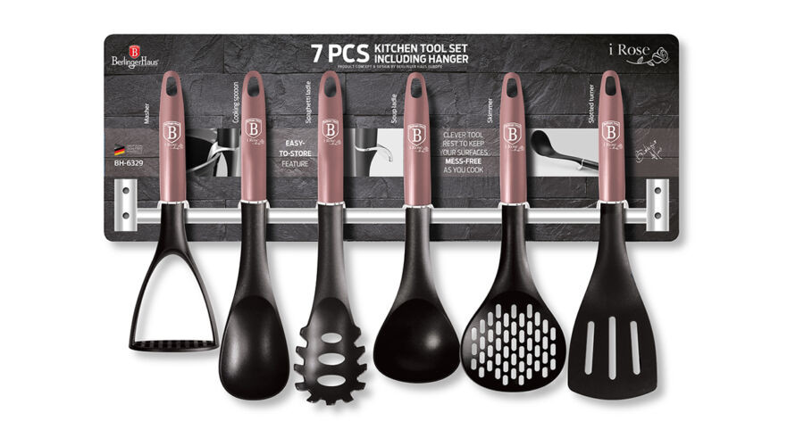 Berlinger Haus I-Rose Collection 7 részes nylon konyhai eszköz készlet fali tartóval