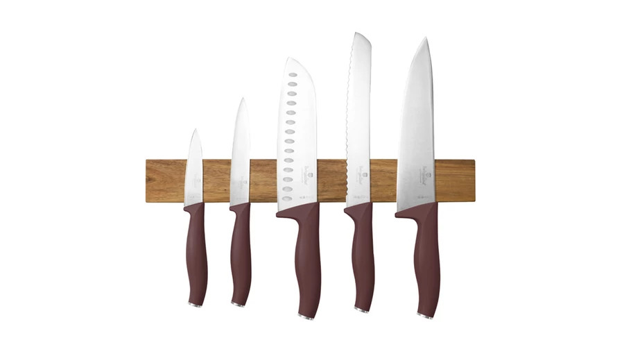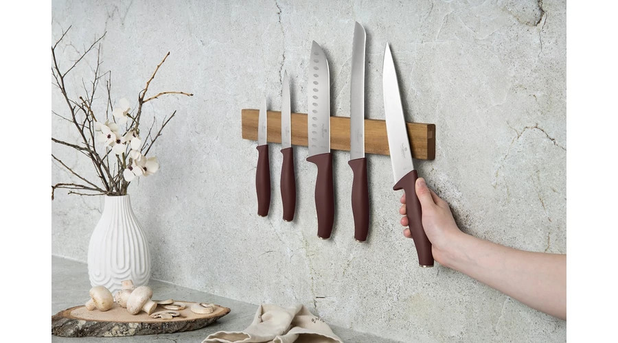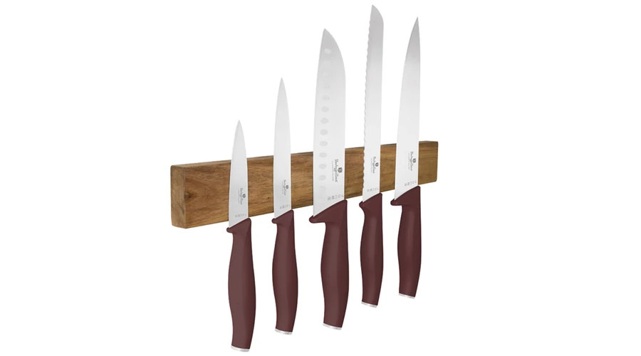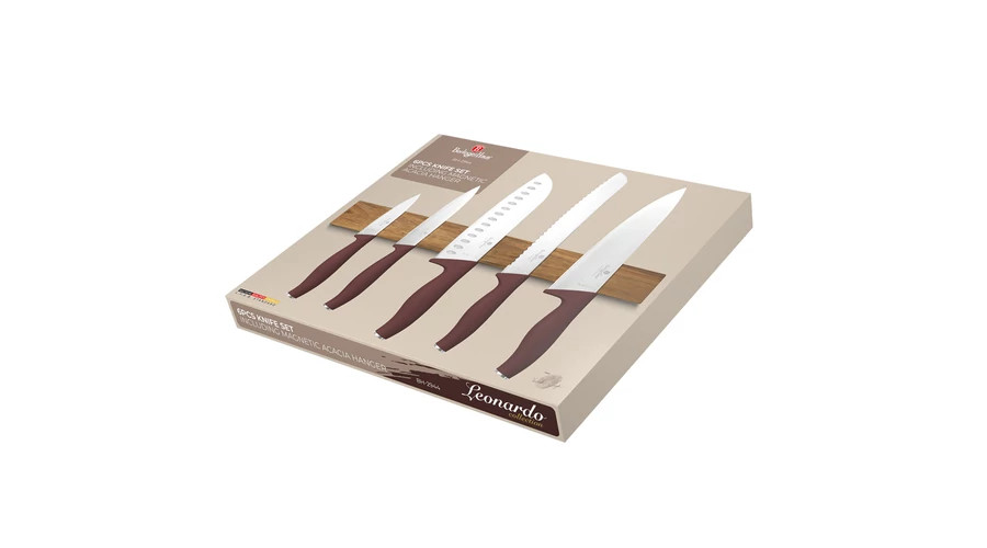 Berlinger Haus Leonardo Collection 6 részes rozsdamentes acél késkészlet akácfa mágneses fali tartóv