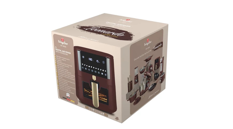 Berlinger Haus Leonardo Collection Air Fryer digitális forró levegős sütő átlátszó ablakkal, 8 L