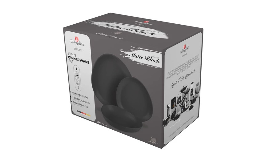 Berlinger Haus Matte Black Collection 18 részes matt kőedény étkészlet, ovális