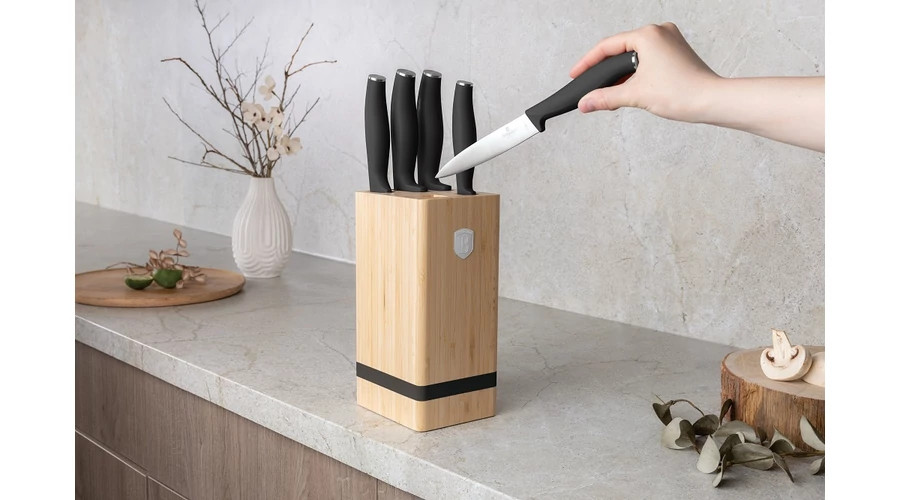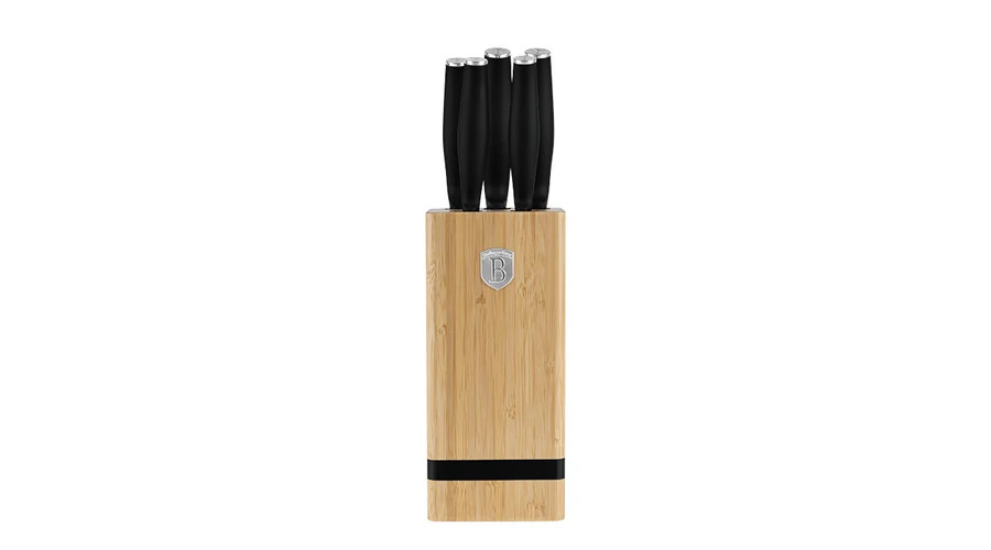 Berlinger Haus Matte Black Collection 6 részes rozsdamentes acél késkészlet bambusz késtartó állvánn