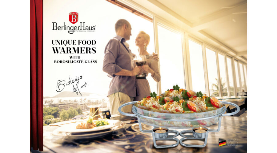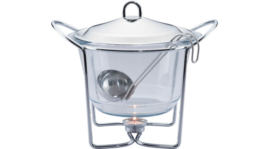 Berlinger Haus melegen tartó leveses tálaló edény hőálló üvegből, fedővel, merőkanállal, 4L,rozsdame