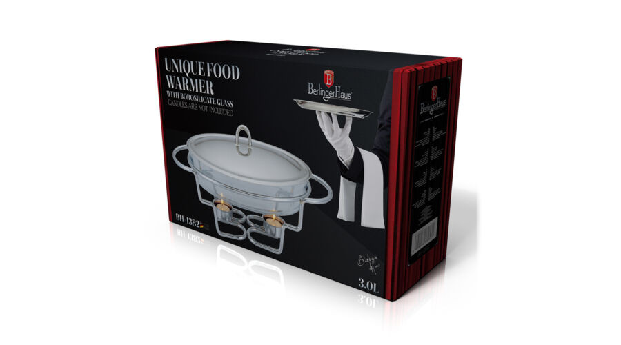 Berlinger Haus melegen tartó ovális tálaló edény hőálló üvegből, fedővel, 3L