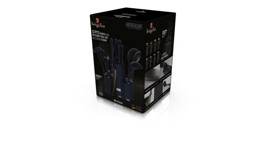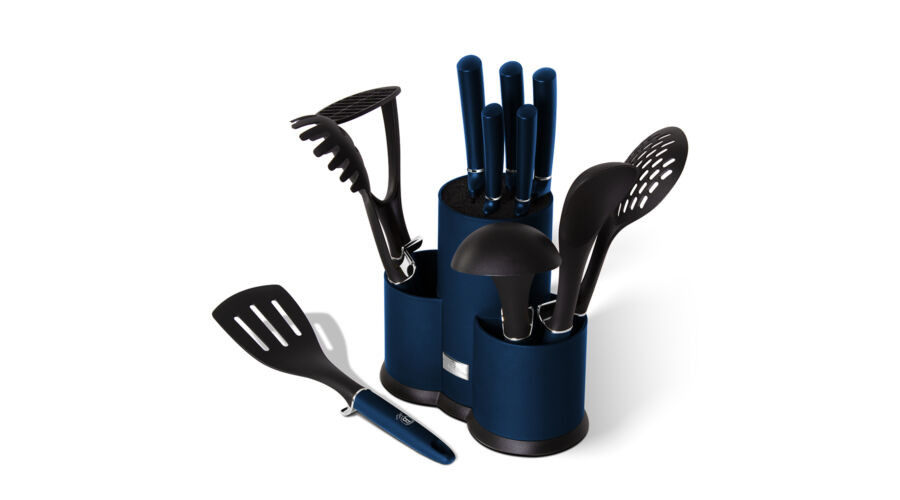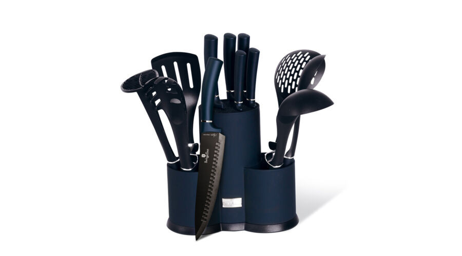 Berlinger Haus Metallic Aquamarine Line 12 részes konyhai készlet késekkel és kiszedőkkel, sötétkék