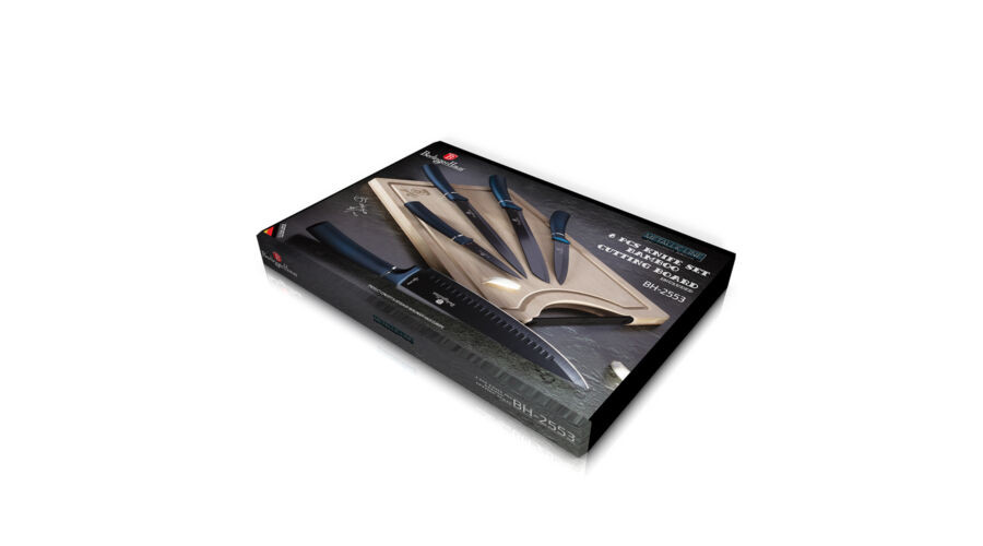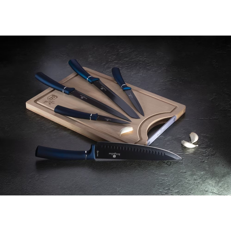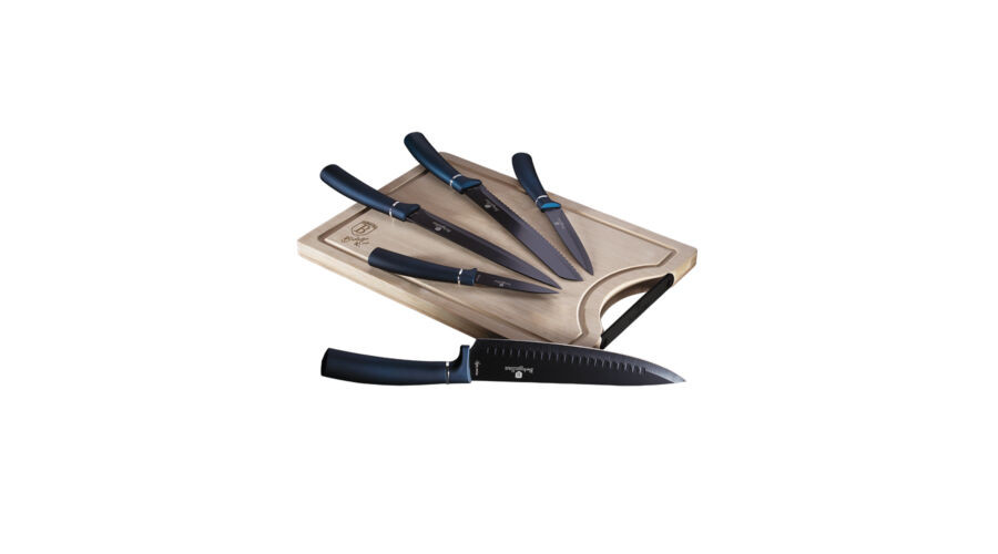 Berlinger Haus Metallic Aquamarine Line 6 részes késkészlet bambusz vágódeszkával, sötétkék/fekete