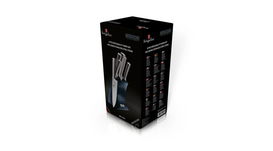 Berlinger Haus Metallic Aquamarine Line 6 részes rozsdamentes acél késkészlet, metál állvánnyal, söt