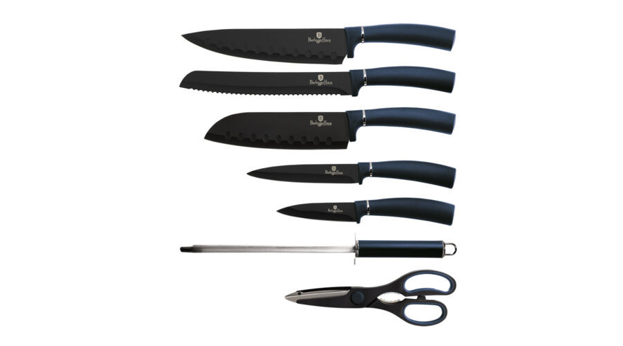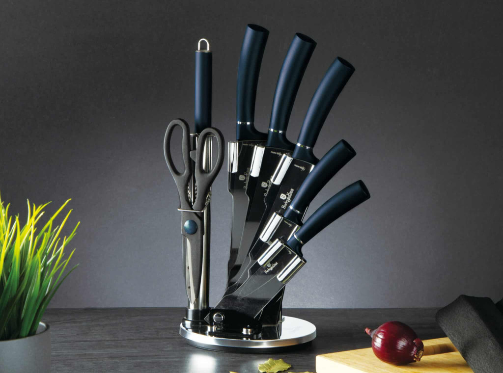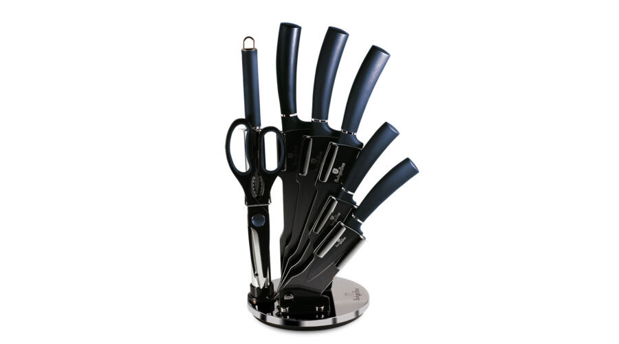 Berlinger Haus Metallic Aquamarine Line 8 részes késkészlet titán bevonattal, állvánnyal, sötétkék