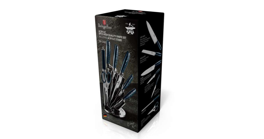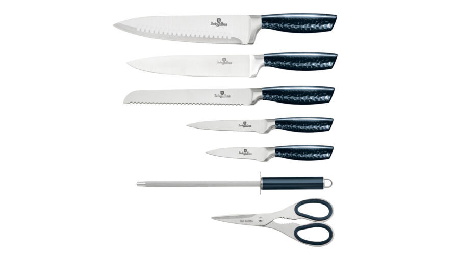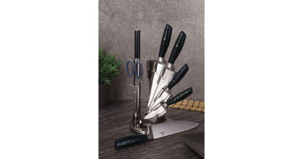 Berlinger Haus Metallic Aquamarine Line 8 részes rozsdamentes acél késkészlet állvánnyal, sötétkék m