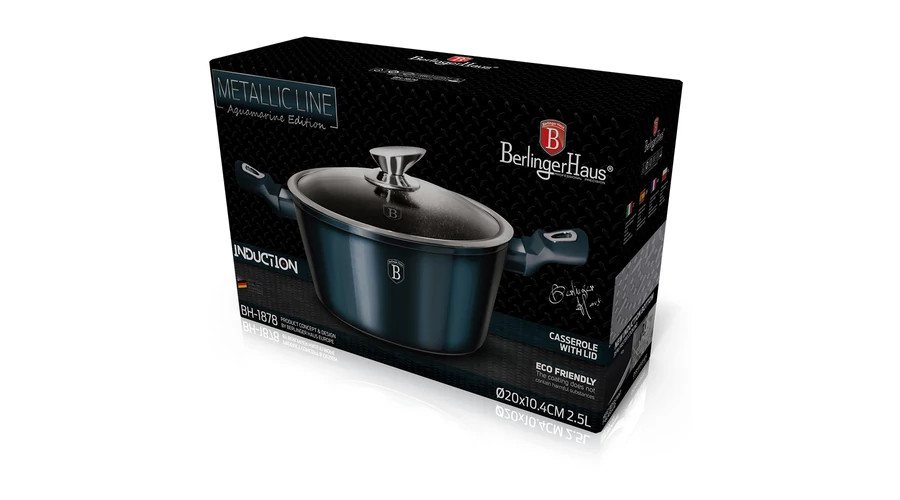 Berlinger Haus Metallic Aquamarine Line magas lábas márvány bevonattal, fedővel, 20 cm