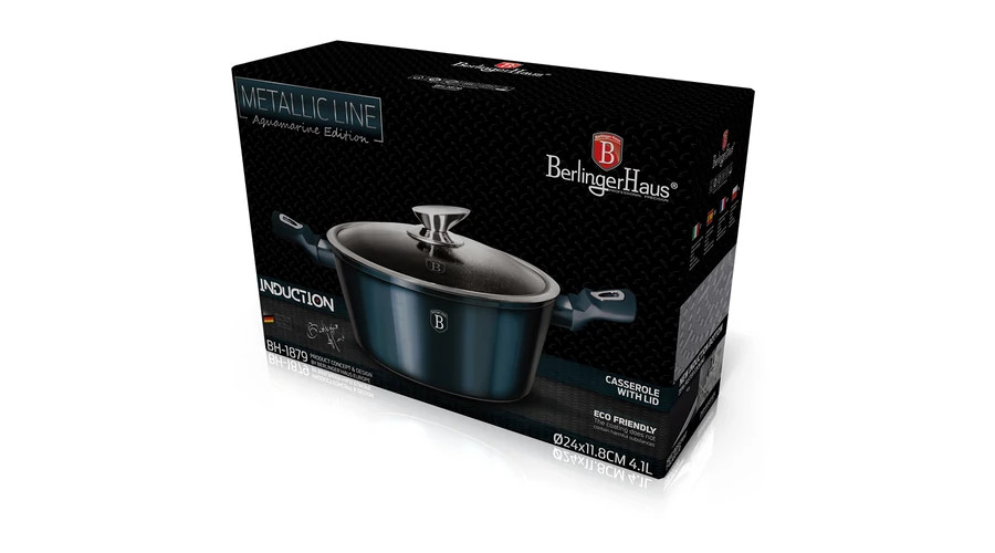 Berlinger Haus Metallic Aquamarine Line magas lábas márvány bevonattal, fedővel, 30 cm