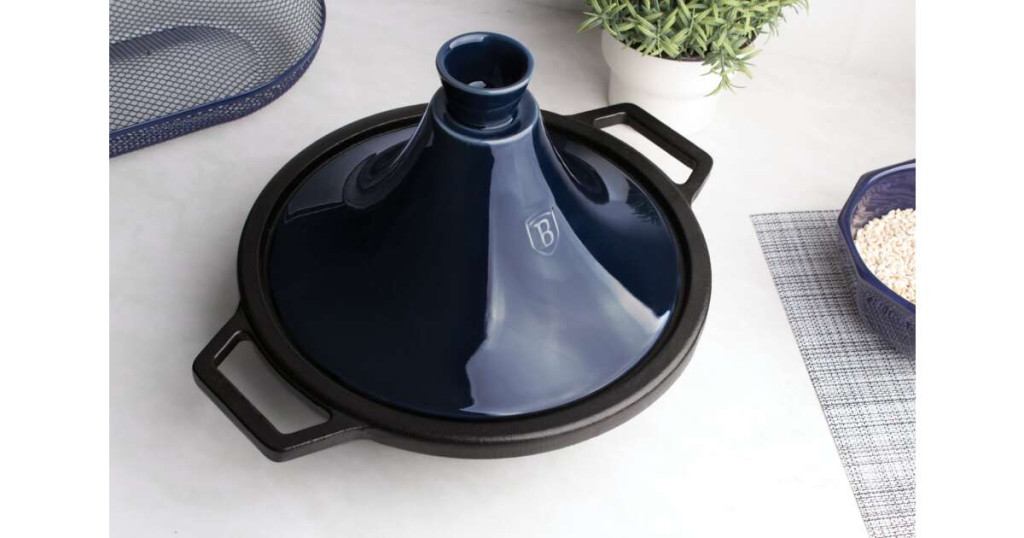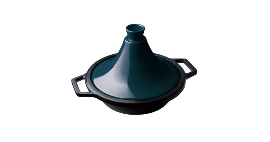 A Berlinger Haus Metallic Line Aquamarine Edition tajine edénye ötvözi a évszázados tapasztalatot a modern technológiával: az öntöttvas alsó edény a hagyományos főzőlapokon kívül indukciós lapon és sütőben is használható.