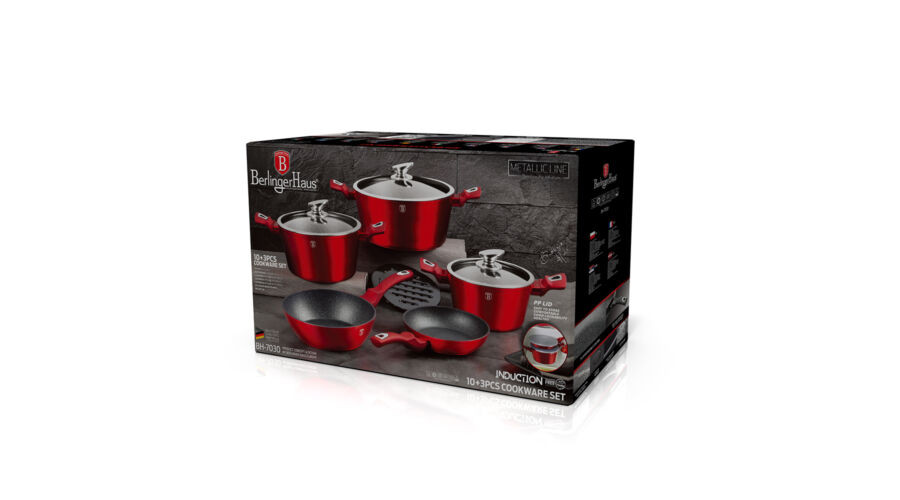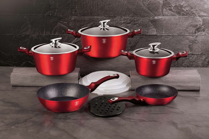 A Berlinger Haus Metallic Burgundy Line kovácsolt alumíniumból készült edények három réteg márványbevonata és a turbó indukciós talp lehetővé teszi, hogy ételei energiatakarékosan és gyorsabban elkészüljenek.