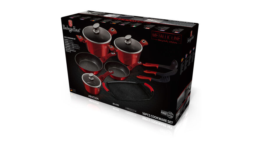 Berlinger Haus Metallic Burgundy Line 14 részes edénykészlet márvány bevonattal, metál külső bevonat