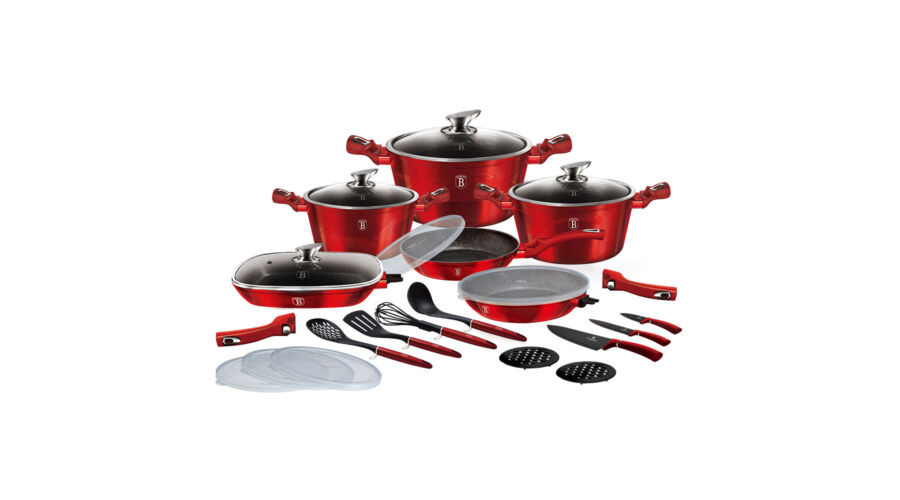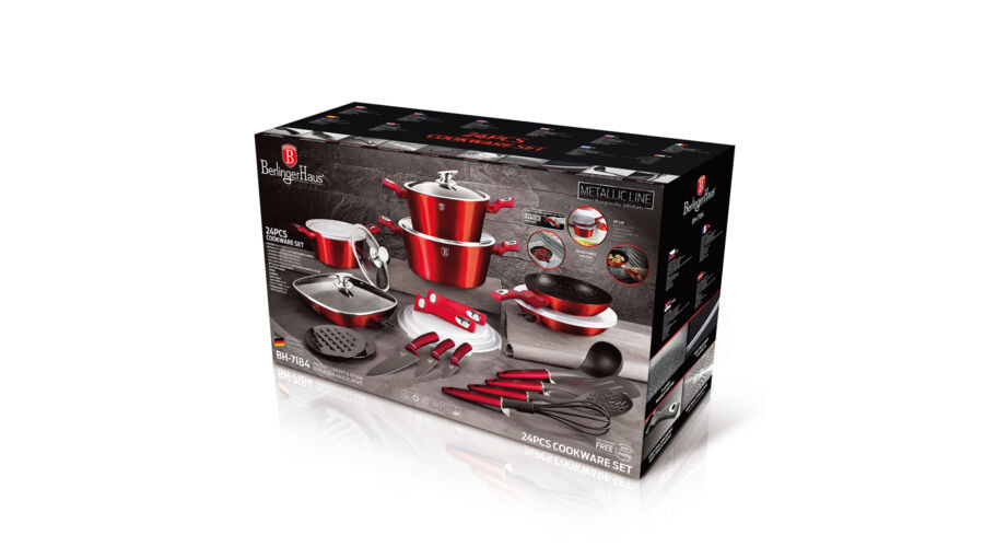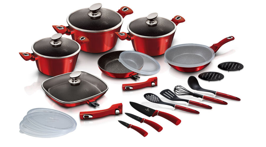 A Berlinger Haus Metallic Burgundy Line kovácsolt alumíniumból készült edények három réteg márványbevonata és a turbó indukciós talp lehetővé teszi, hogy ételei energiatakarékosan és gyorsabban elkészüljenek.