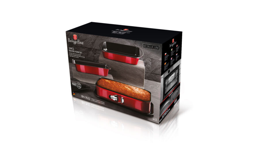 Berlinger Haus Metallic Burgundy Line 3 részes sütőforma készlet titán bevonattal, metál külső bevon