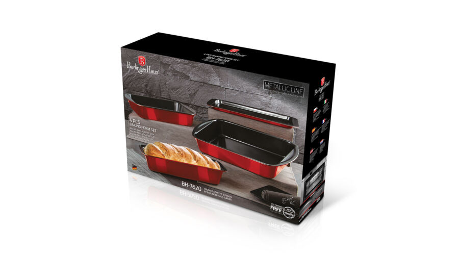 Berlinger Haus Metallic Burgundy Line 4 részes tepsikészlet titán bevonattal, metál külső bevonattal