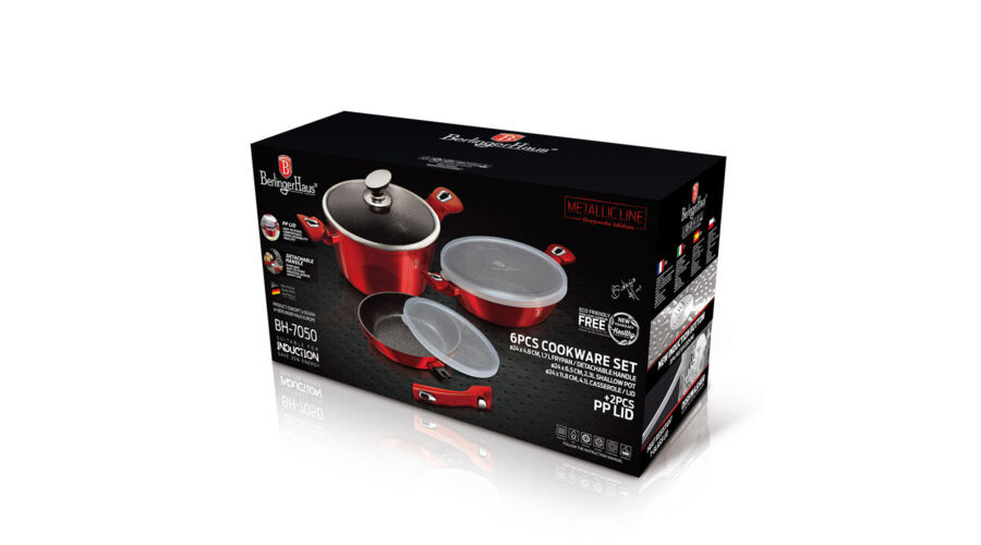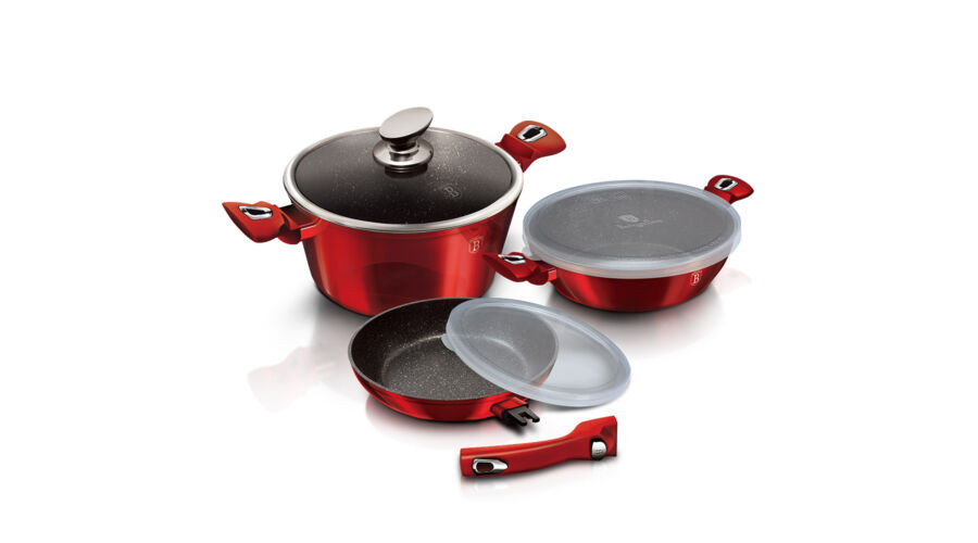 Berlinger Haus Metallic Burgundy Line 6 részes edénykészlet márvány bevonattal, metál külső bevonatt