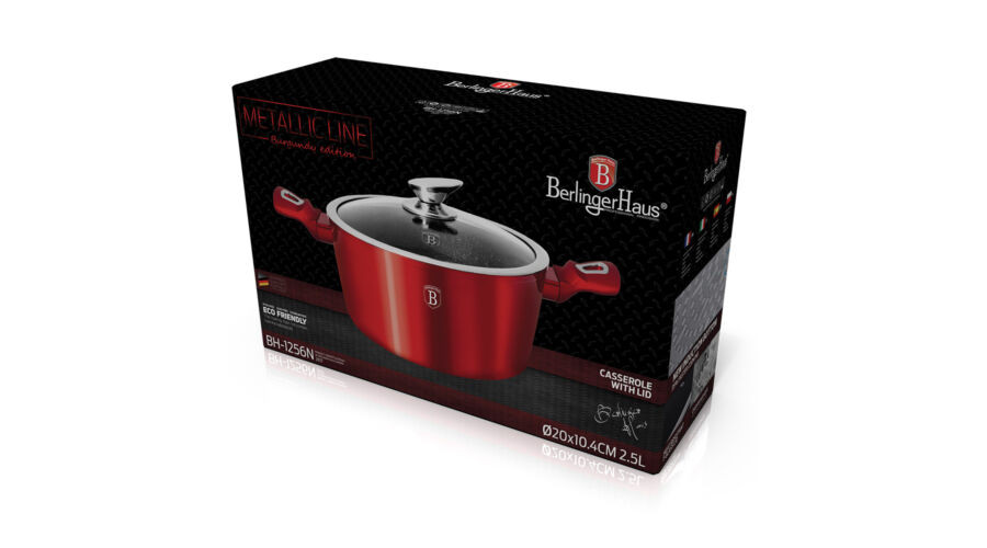 Berlinger Haus Metallic Burgundy Line magas lábas márvány bevonattal, fedővel, 20 cm