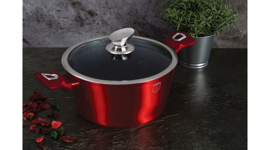 Berlinger Haus Metallic Burgundy Line magas lábas márvány bevonattal, fedővel, 24 cm
