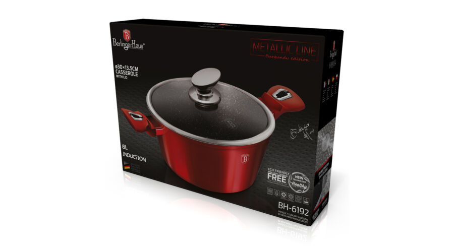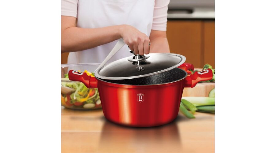 Berlinger Haus Metallic Burgundy Line magas lábas márvány bevonattal, metál külső bevonattal, fedőve
