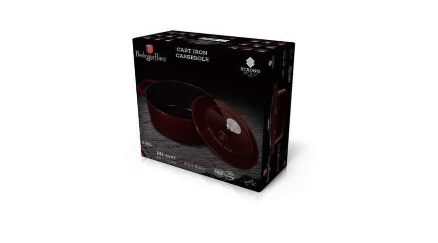 Berlinger Haus Metallic Burgundy Line öntöttvas magas lábas fedővel, 24 cm, burgundy