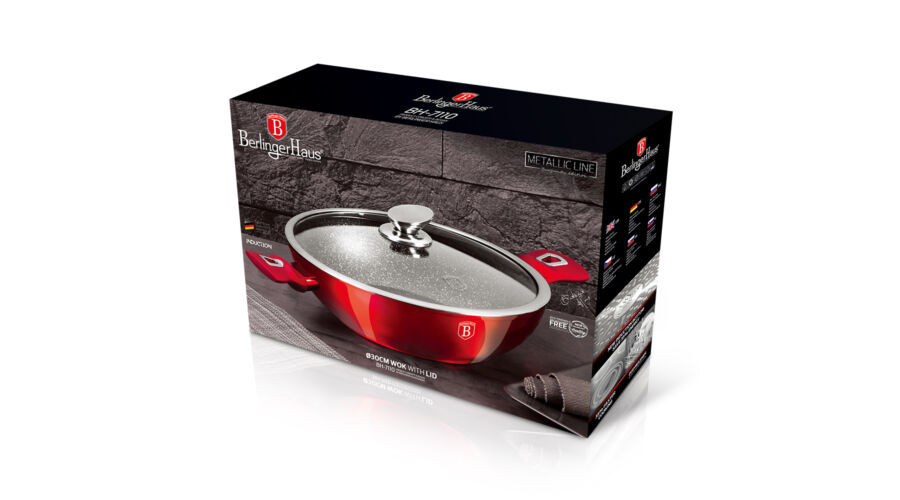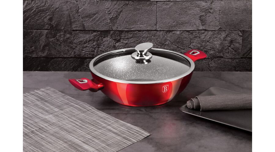 Berlinger Haus Metallic Burgundy Line wok fedővel, márvány bevonattal, metál külső bevonattal, 30 cm