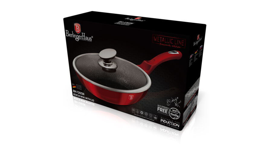 Berlinger Haus Metallic Burgundy Line wok márvány bevonattal, fedővel, 28 cm
