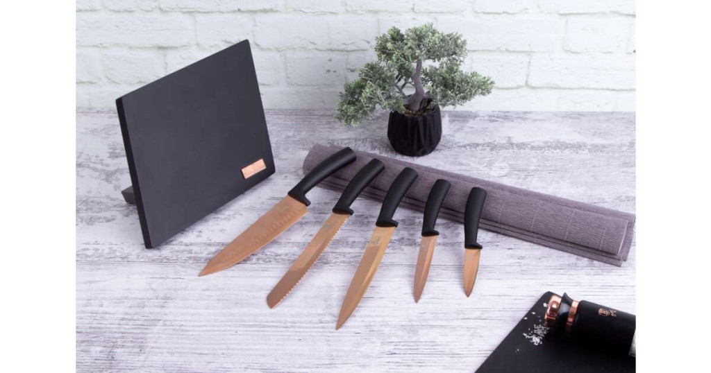 Berlinger Haus Metallic Line 6 részes rozsdamentes késkészlet titán bevonattal, mágneses állvánnyal,