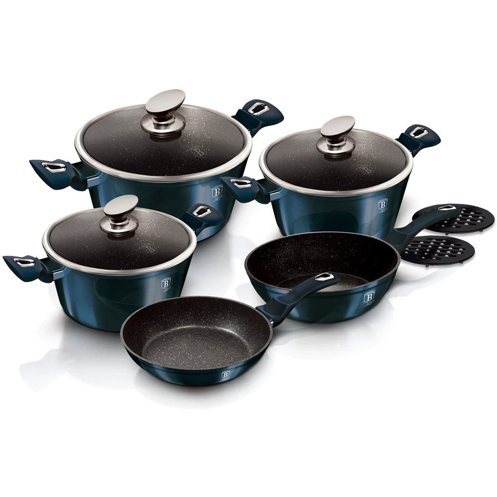 A Berlinger Haus Metallic Line Aquamarine Edition kovácsolt alumíniumból készült edények három réteg márványbevonata és a turbó indukciós talp lehetővé teszi, hogy ételei energiatakarékosan és gyorsabban elkészüljenek.