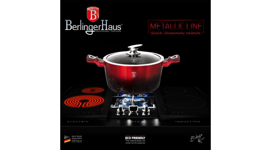 Berlinger Haus Metallic Line Black Burgundy Edition magas lábas márvány bevonattal, fedővel, 24 cm