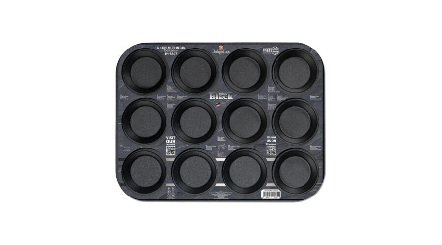 Berlinger Haus Metallic Line Shine Black Edition 12 lyukú muffinsütő titán bevonattal, metál külső b