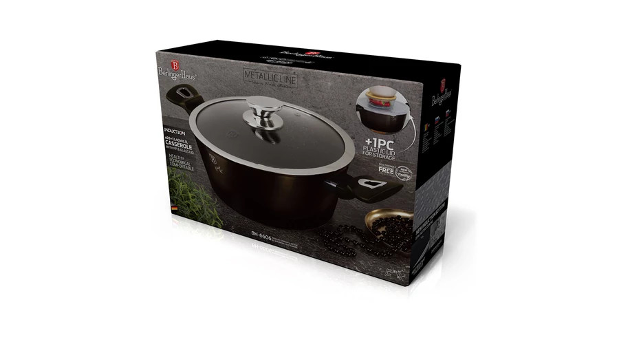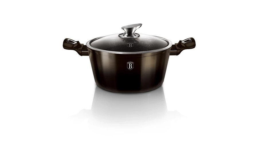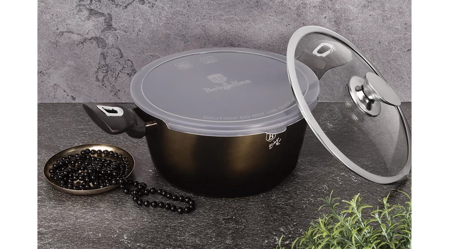 Berlinger Haus Metallic Line Shine Black Edition magas lábas márvány bevonattal, kétféle fedővel, 28