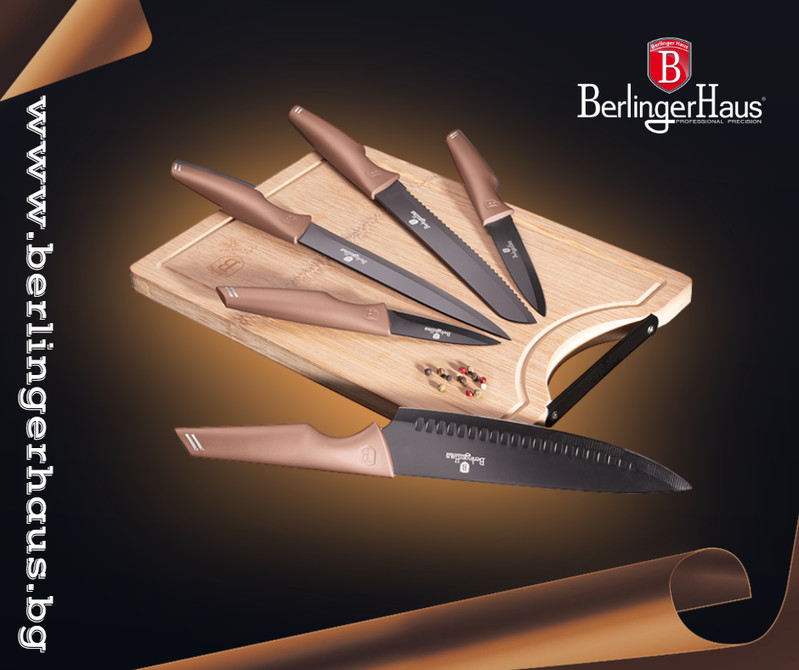 Berlinger Haus Metallic Rosegold Line 6 részes késkészlet bambusz vágódeszkával