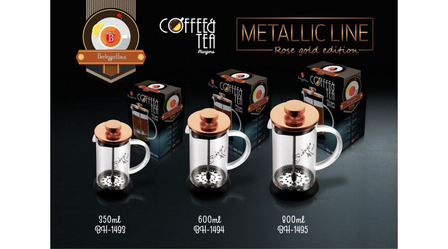Berlinger Haus Metallic Rosegold Line dugattyús kávé- és teafőző, 350 ml
