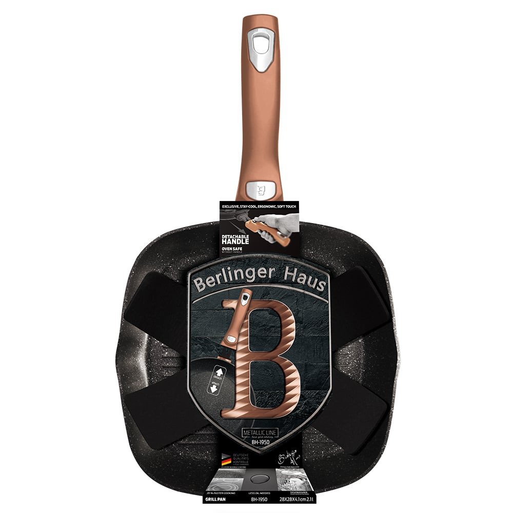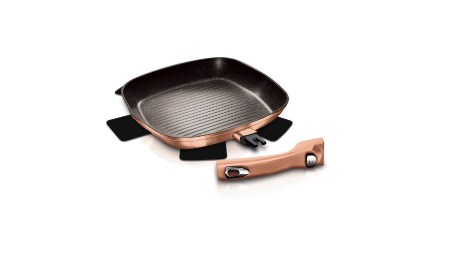 Berlinger Haus Metallic Rosegold Line grill serpenyő márvány bevonattal, levehető nyéllel, 28 cm