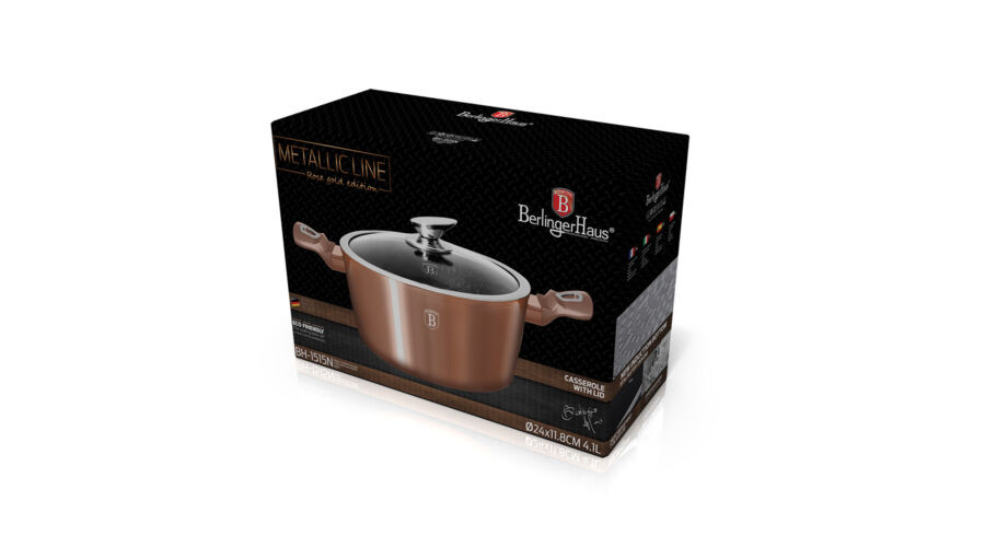 Berlinger Haus Metallic Rosegold Line magas lábas márvány bevonattal, fedővel, 24 cm