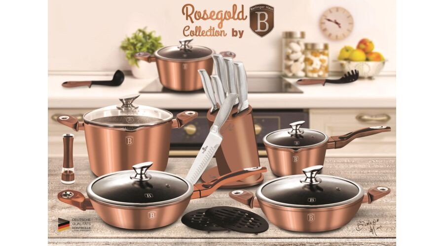 Berlinger Haus Metallic Rosegold Line magas lábas márvány bevonattal, metál külső bevonattal, fedőve