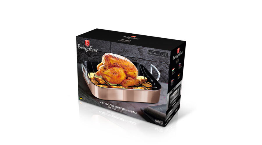 Berlinger Haus Metallic Rosegold Line tepsi kiemelő ráccsal, titán bevonattal