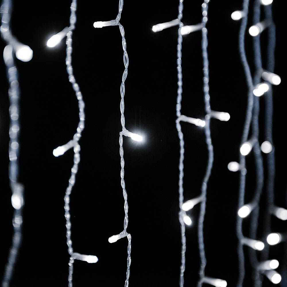 Meseszép fényfüggöny átlátszó kábellel korlátok, falak, oszlopok dekorálására. A toldható rendszer lehetővé teszi, hogy akár 1200 LED-ig egybe kapcsoljunk több Crystalline terméket. A fényháló szálai ugyanolyan hosszúak, és egy központi kábelről lógnak le, ezért szabályos, egységes fényfal építhető belőle. Az átlátszó kábel alig észrevehető, a LED-ek fényei maximálisan érvényesülnek. Visszafogott tiszta fehér, natúr fénye hűvös, elegáns hangulatot teremt.