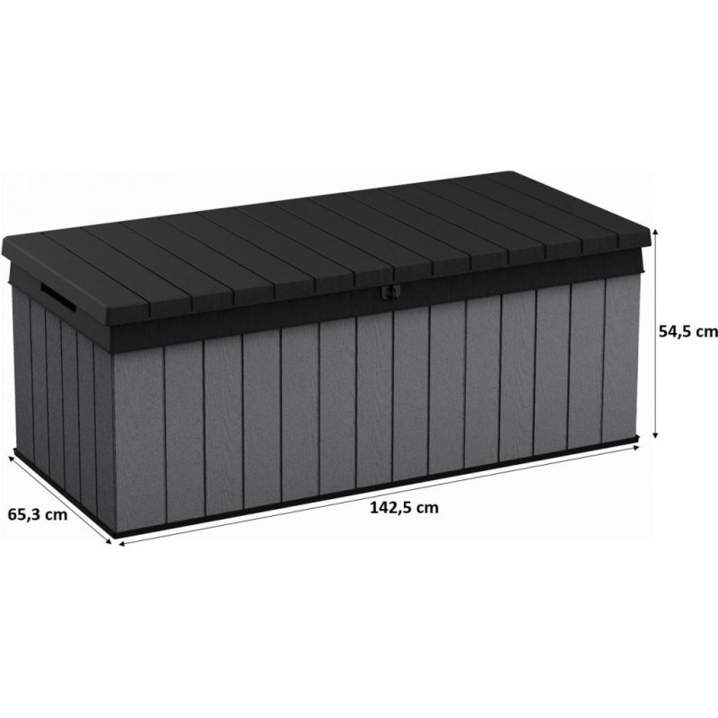 Tökéletes választás a kültérre. A Darwin Deck Box ötvözi az ultra-erős felépítést az elegáns dizájnnal. Ez a masszív kültéri láda innovatív EVOTECH™ anyagból készült, amely időjárásálló, UV-védett, rusztikus fa hatású. A tágas kapacitású Darwin párnákat vagy egyéb kiegészítőket tárolhat. A dugattyús rendszer segíti a zökkenőmentes kinyitást, míg a zárható fedél lehetővé teszi, hogy a ládát szükség esetén szorosan zárva tartsák. Extra ülőgarnitúraként is használható. 3 féle űrtartalmú kivitel létezik, 380L és 570L és 662L.