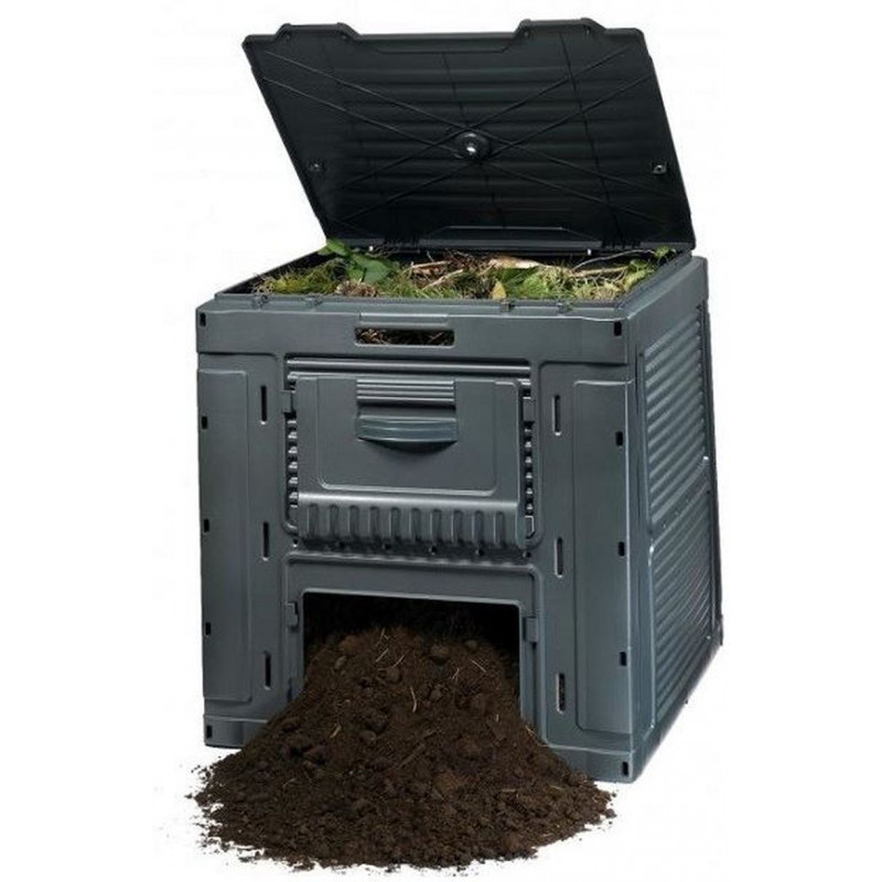 E-Composter 470L műanyag kerti komposztáló, aljzat nélkül fekete