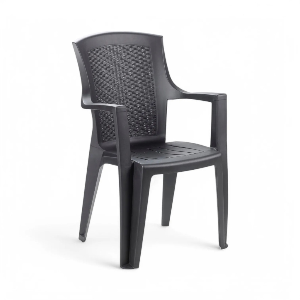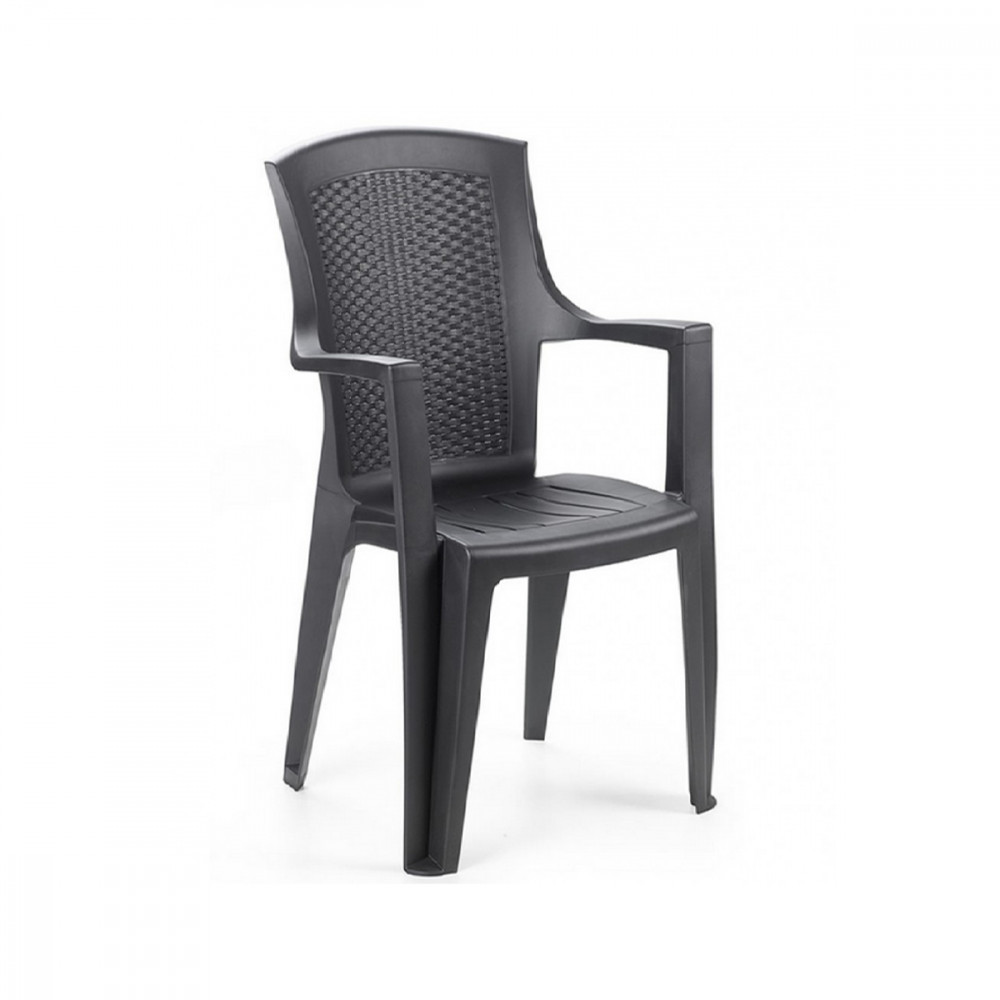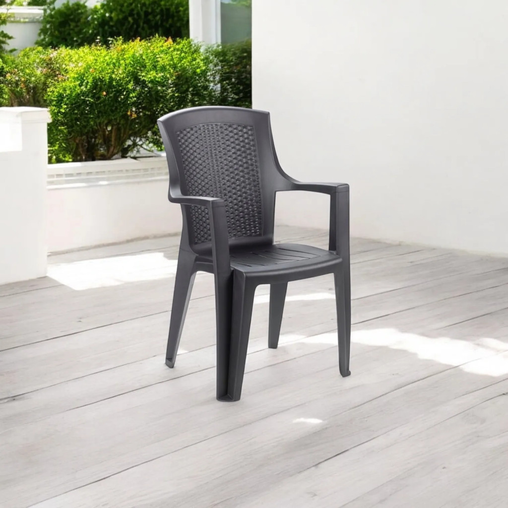 Eden rattan hatású karfás műanyag kerti szék antracit szürke O282