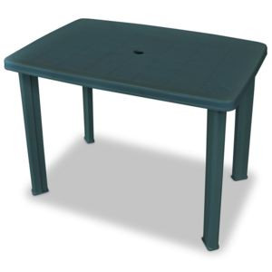 Az asztal közepén napernyőtartó luk található.