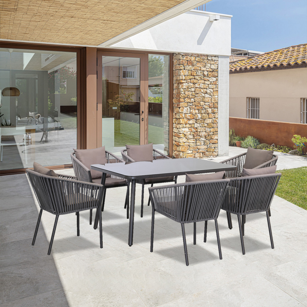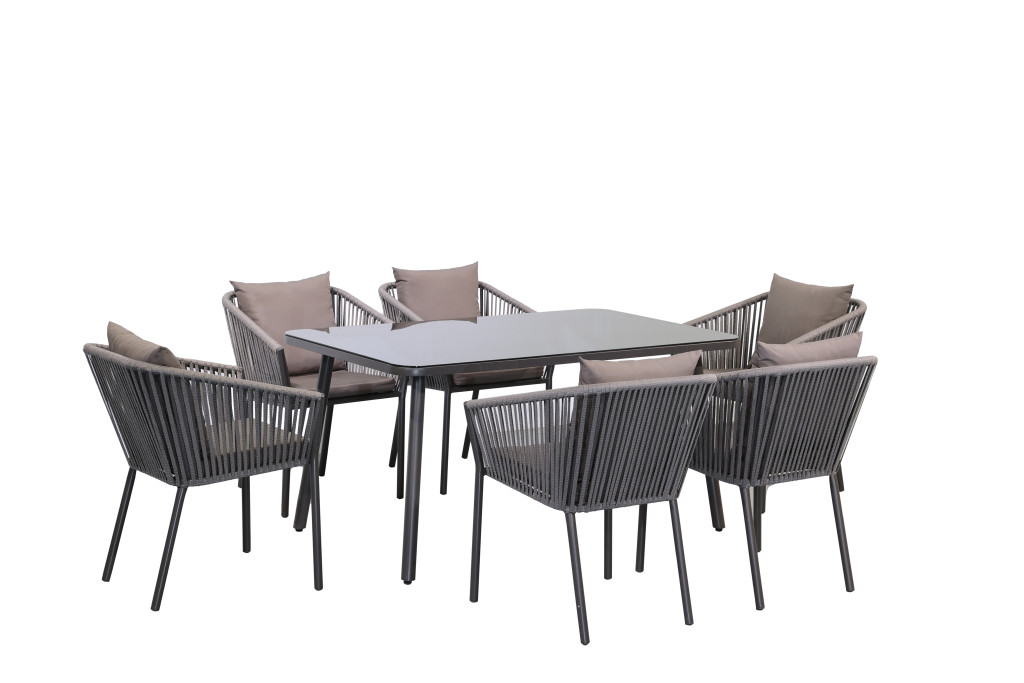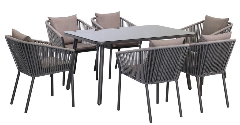 Fémvázas 6 személyes étkező szett szürke színben, párnával