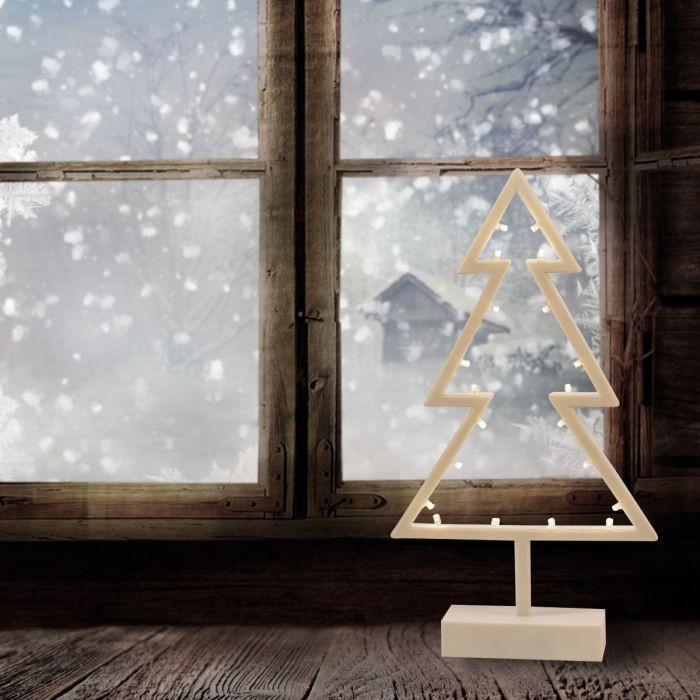Fenyő ablakdísz, meleg fehér, vezeték nélküli, 20 LED, 39 cm